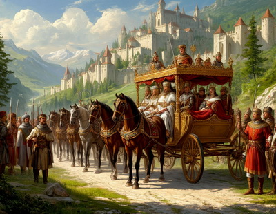 Это королевство находится совсем рядом с Зелёной Долиной. Амрúт со своими боевыми старцами, кстати говоря, вооружёнными здоровенными сверúгскими мечами, приехал на карете, запряжённой тройкой лошадей.